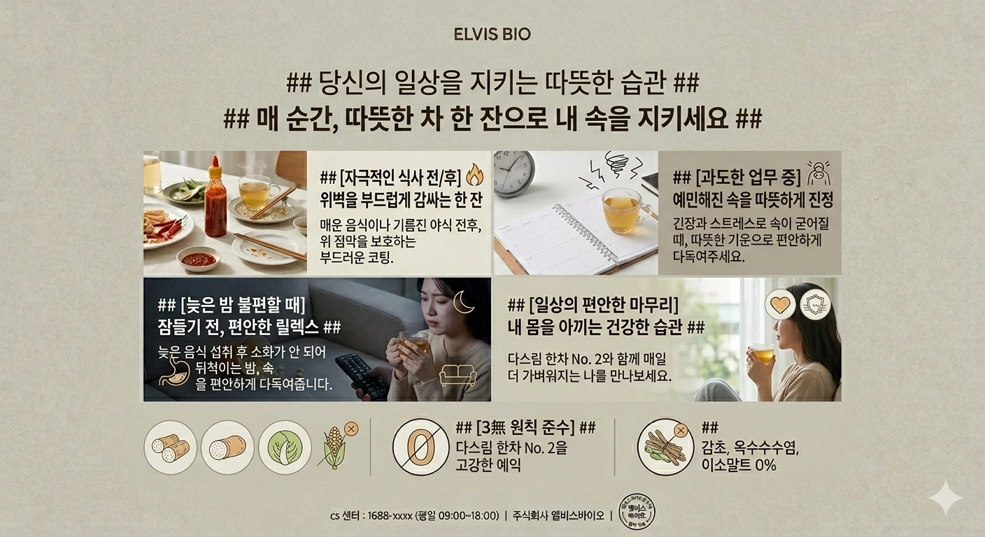 핵심 타겟: 위산과다로 속 쓰림이 잦은 분, 스트레스성 위장 장애가 있는 분.