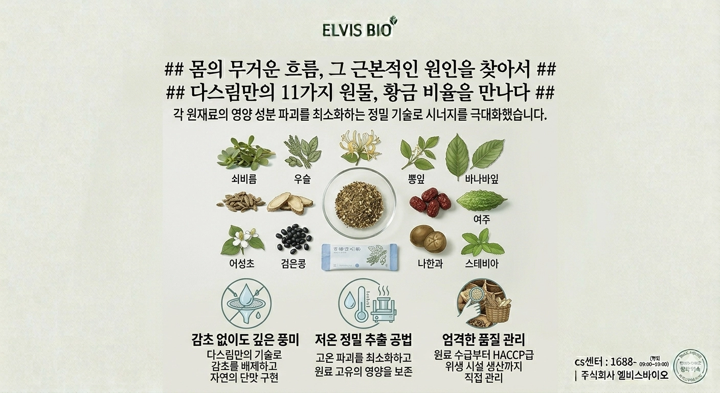 "인위적 첨가물(감초, 옥수수수염, 잔탄검)을 완전히 배제한 순수 원물 공법"